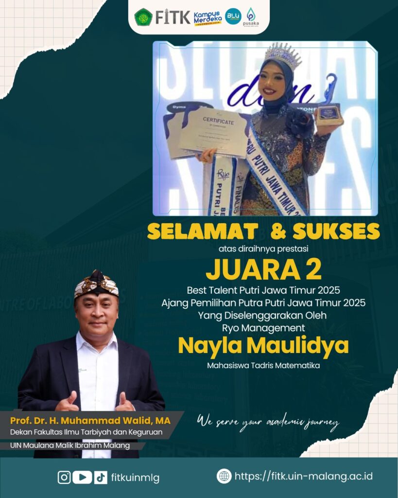 FITK UIN Maulana Malik Ibrahim Malang adalah Fakultas terkemuka dalam penyelenggaraan tridharma perguruan tinggi di bidang ketarbiyahan yang berorientasi pada lulusan yang memiliki kedalaman spiritual, keagungan akhlak, keluasan ilmu dan kematangan profesional, dalam menggerakkan kemajuan masyarakat di tingkat nasional dan internasional.
