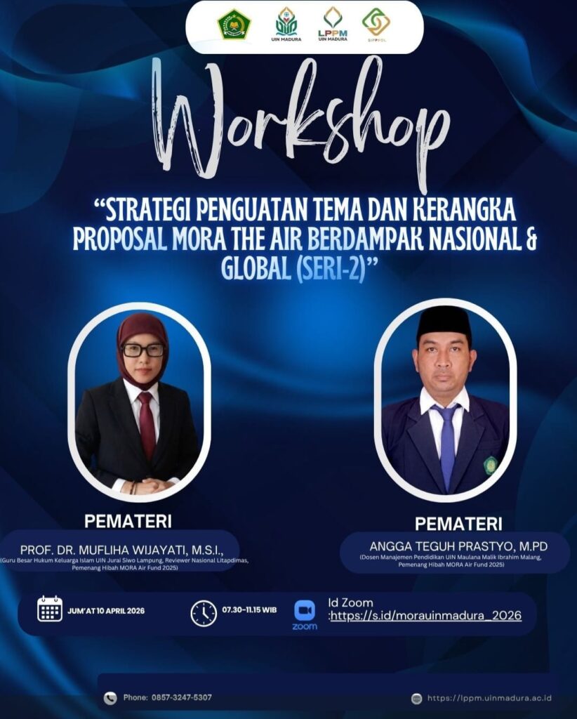 FITK INSIGHT – Dosen Program Studi Manajemen Pendidikan Islam (MPI) FITK UIN Malang, Angga Teguh Prastyo, M.Pd., didaulat menjadi salah satu narasumber utama dalam workshop penyusunan proposal MoRA AIR Fund yang diselenggarakan oleh LPPM UIN Madura. Kegiatan ini merupakan bagian dari persiapan pembentukan tim penelitian dalam menghadapi pembukaan hibah MoRA AIR Fund tahun 2026 yang dijadwalkan mulai Mei mendatang. Workshop berlangsung secara daring pada Jumat (10/4/2026) dengan mengusung tema “Strategi Penguatan Tema dan Kerangka Proposal MoRA The AIR Berdampak Nasional & Global (Seri-2)”.