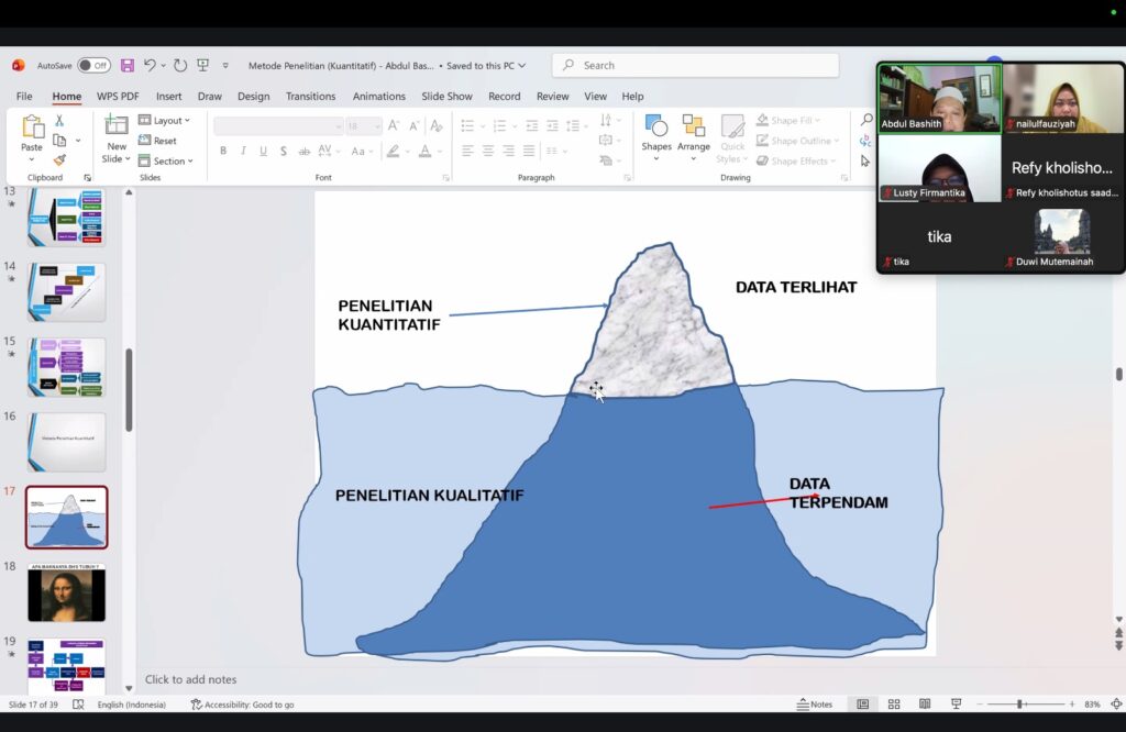 • Rabu, 4 Februari 2026: Prof. Dr. H. Abdul Bashith, M.Si mengupas penelitian kuantitatif, melatih mahasiswa berpikir objektif berbasis data dan statistik.