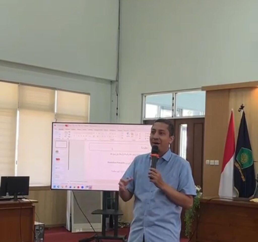 Tidak hanya menerima materi secara konseptual, peserta juga diajak melakukan simulasi dan praktik langsung menggunakan bahasa Arab dalam konteks pembelajaran. Mahasiswa berlatih menyampaikan apersepsi, menjelaskan materi, memberikan instruksi, hingga menutup pelajaran dalam bahasa Arab. Pendekatan praktik ini dirancang agar mahasiswa terbiasa menggunakan bahasa tersebut secara komunikatif dan kontekstual.