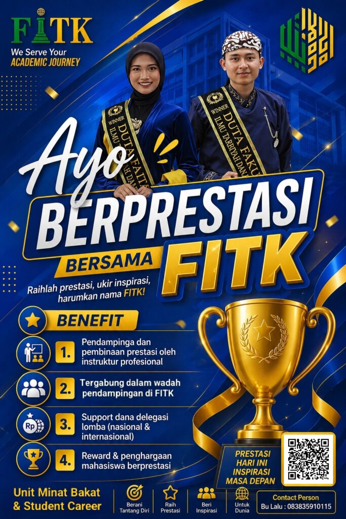📢Ayo Berprestasi Bersama FITK! Dengan berbagai program pendampingan dan pembinaan di masing” Program Studi, FITK siap menjadi wadah terbaik untuk mengukir prestasi gemilang. 🌟 Benefit yang kamu dapatkan:✅Pendampingan oleh instruktur profesional✅Tergabung dalam Wadah pengembangan minat dan bakat✅Dukungan dana lomba (nasional & internasional)✅Reward untuk mahasiswa berprestasi Jika kalian mendapatkan juara, Jangan lupa isi:1. Form Pendataan Mahasiswa […]